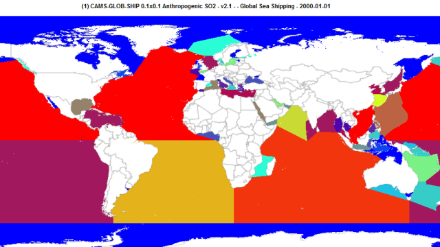 Duifference between Ship NOx emissions from CAMS-REG and CAMS-GLOB (year 2018)
